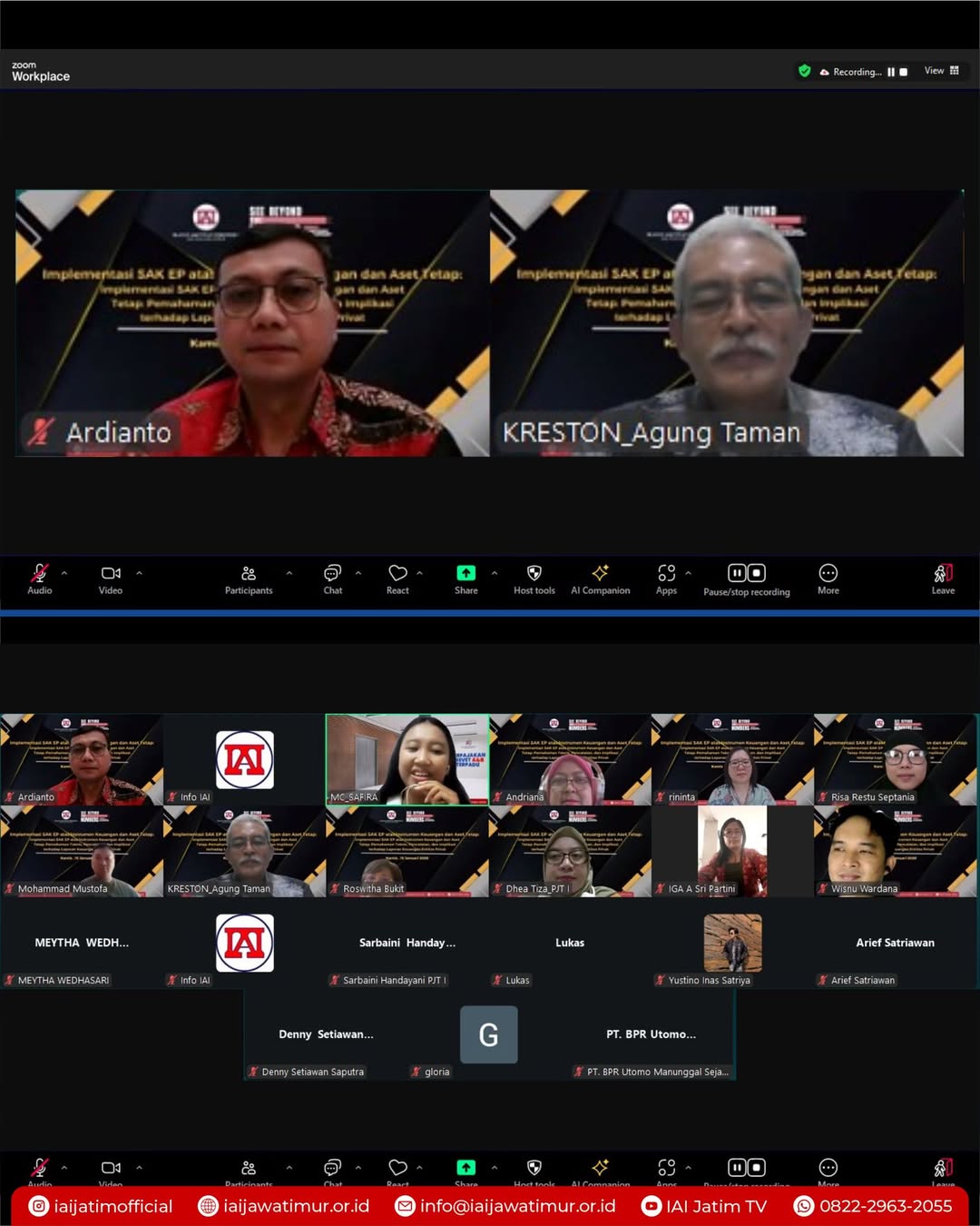 Ikatan Akuntan Indonesia (IAI) Wilayah Jawa Timur kembali menyelenggarakan kegiatan Pendidikan Profesional Berkelanjutan (PPL) pada Kamis, 15 Januari 2026. Kegiatan ini mengangkat tema “Implementasi SAK EP atas Instrumen Keuangan dan Aset Tetap: Pemahaman Teknis, Pencatatan, dan Implikasi terhadap Laporan Keuangan Entitas Privat” dan dilaksanakan secara daring melalui Zoom Meeting.