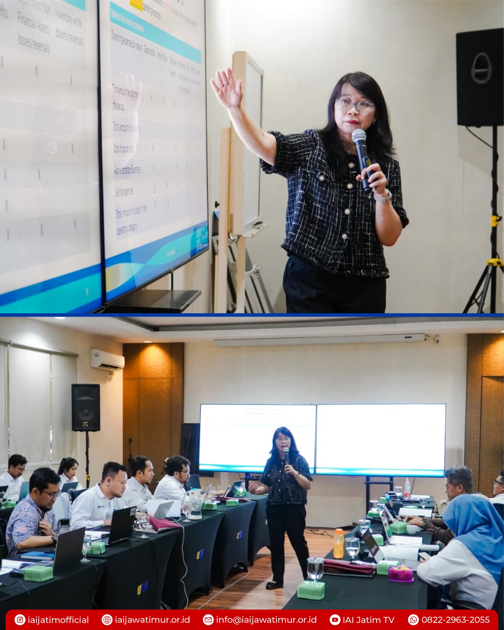 Pelatihan menghadirkan Dr. Yie Ke Feliana, S.E., M.Com., Ak., CA., CPA., CFP., CRA., selaku Wakil Ketua Bidang Kajian Standar Akuntansi IAI Wilayah Jawa Timur, sebagai narasumber utama. Materi yang disampaikan mencakup ruang lingkup PSAK 118, persyaratan umum penyajian laporan keuangan, prinsip agregasi dan disagregasi, laporan laba rugi, laporan posisi keuangan, laporan perubahan ekuitas, serta catatan atas laporan keuangan.