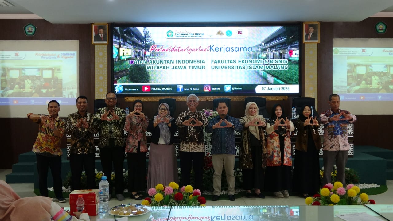 Rabu, 7 Januari 2025, Ikatan Akuntan Indonesia (IAI) Wilayah Jawa Timur melakukan penandatangan Memorandum of Understanding (MoU) dengan Universitas Islam Malang (UNISMA). Ketua IAI Wilayah Jawa Timur, Prof. Basuki., M.Com(HONS), Ph.D., Ak., CMA., ACPA. CertDA. Bersama dengan Dekan Fakultas Ekonomi dan Bisnis (FEB) UNISMA, Afifudin, SE, M.SA, Ak. melakukan penandatangan MoU dalam rangka meningkatkan kemampuan dan keterampilan guna mendukung terciptanya kemajuan perekonomian yang bermula dari dunia Pendidikan.